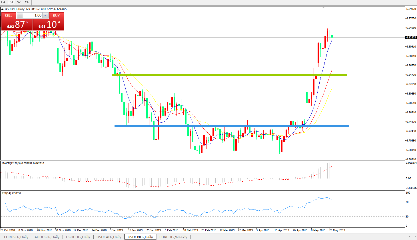 技术面简析:日线图均线呈有序多头排列看多,MACD在0轴上方运行且动能柱0轴上方持续放量,RSI超买区域有下行迹象,汇价强力上攻后维持整理态势,预计短期汇价有进一步上行空间,中期重点关注中美贸易争端后续进展。