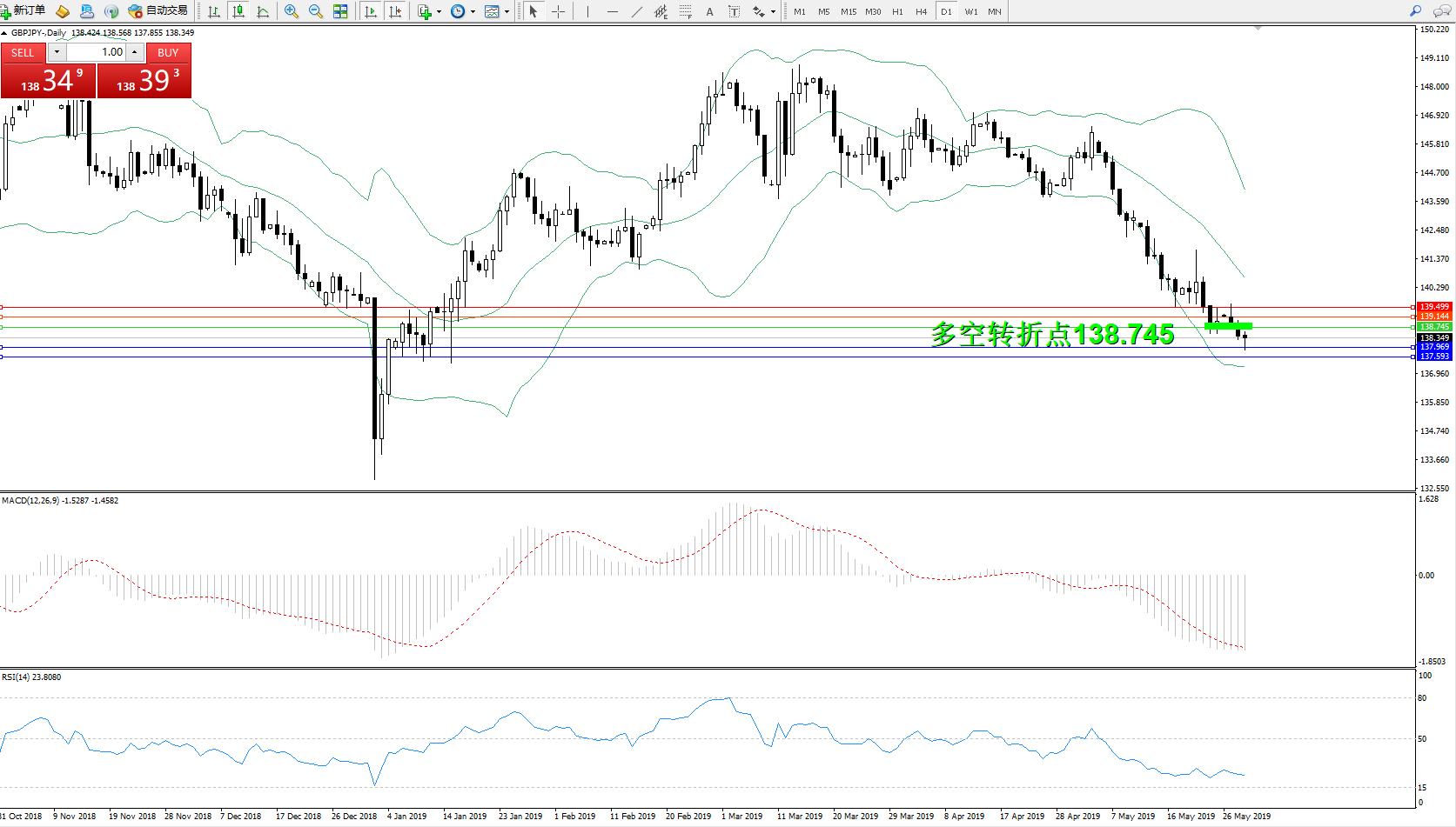 交易策略:138.745下方看跌,目标137.969、137.593