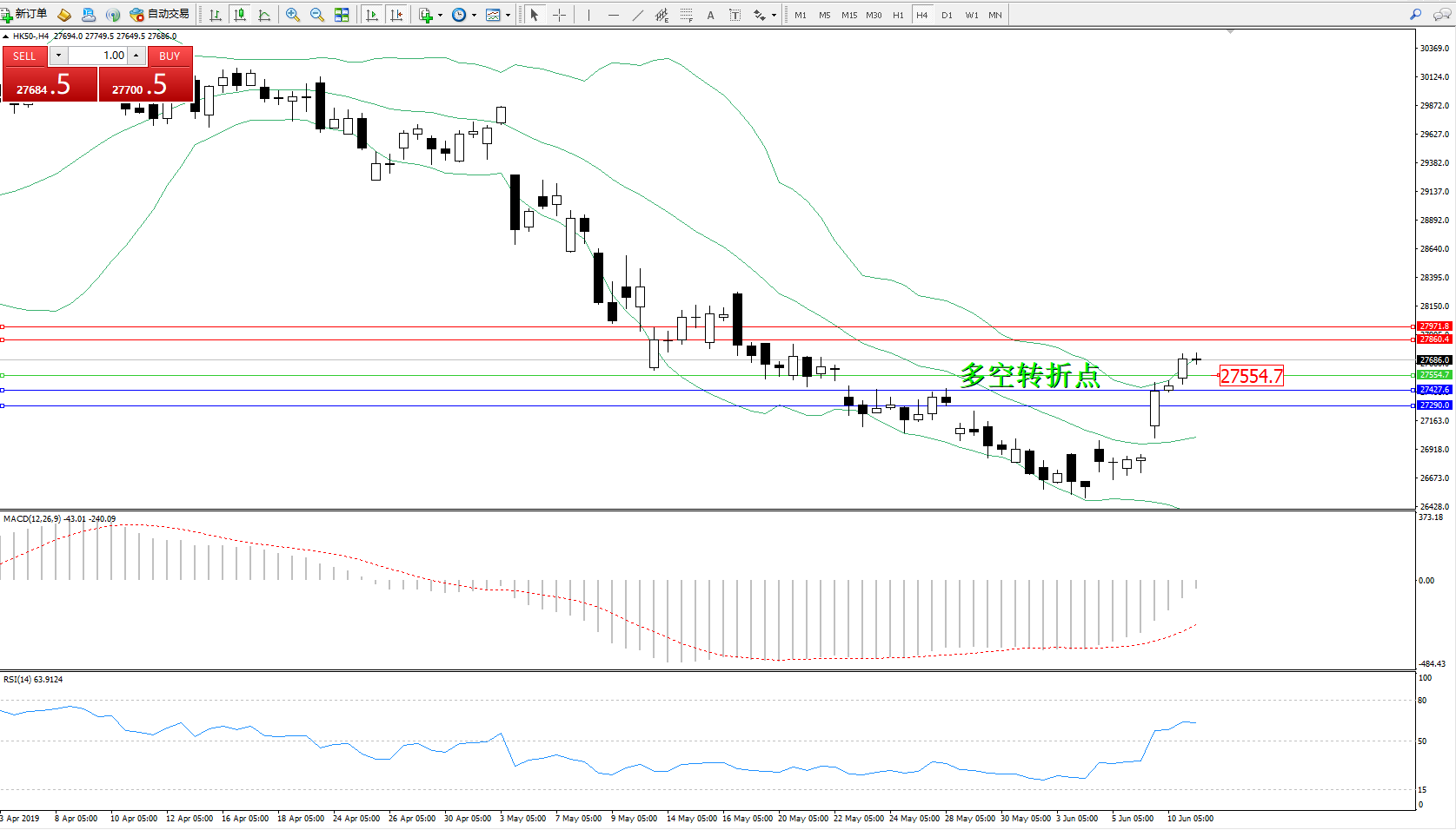 香港恒生指数611日收盘上涨210.70点,涨幅0.76%,报27789.34点;港股仍然面临很多不确定性,未来市场调整结束需要等待外部环境改善,以及港股盈利确认见底回升。如果6-7月上旬境内外几个风险因素释放,届时调整幅度可能会较充分。暂时来说港股经历5月一波下跌浪后,已逐步消化基本面的不确定因素,但能否企稳回升,还要进一步观察。进入6月,港股反弹的空间和持久力有限,市场调整仍会是未来一段时间的主旋律,投资者仍需控制仓位参与,不宜追涨杀跌。