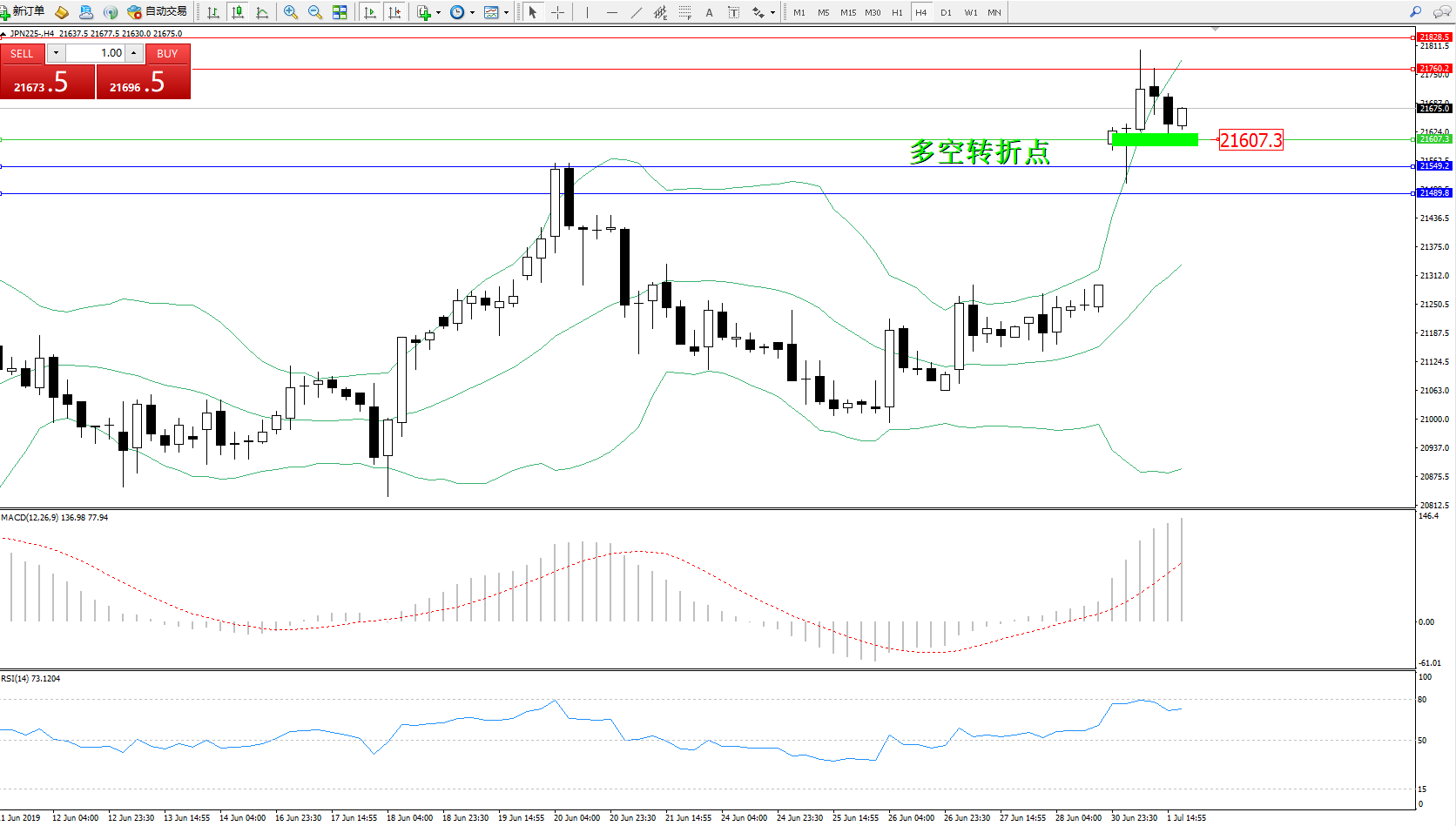 日经225指数7月1日(周一)收盘上涨457.58点,涨幅2.15%,报21733.50点。日经指数周一大涨逾2%,触及近两个月高点,美国和中国同意重启贸易谈判后,风险偏好改善,同时美国放松对华为的限制,提振科技类股。美国总统特朗普与中国国家主席习近平周末会晤后,中国同意购买数量未定的美国农产品,并重回谈判桌。但是没有为协议进展设定截止日,美中对协议的重要部分仍有分歧。
