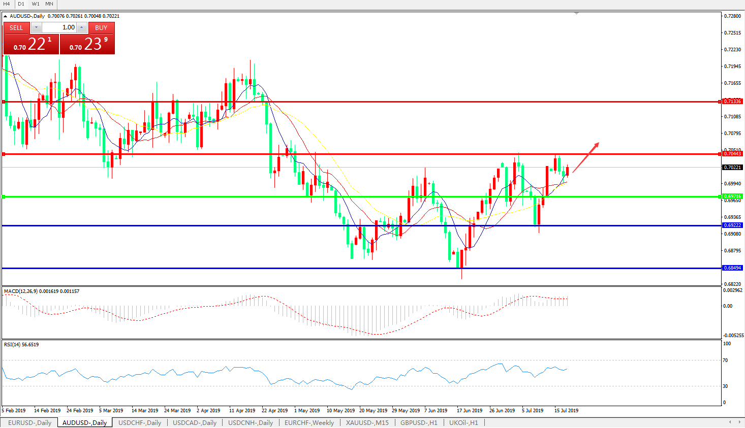 压制位:0.7020 0.7100