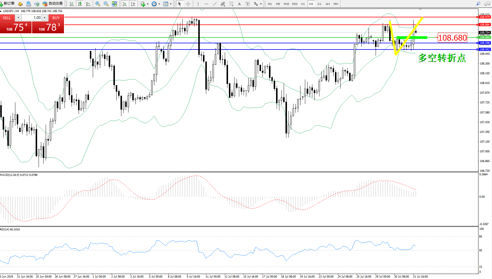 美联储宣布下调联邦基金利率25个基点至2.00%-2.25%。这是2008年12月以来美联储的首次降息。美日触及109.00关口,关注关口争夺情况,日图目前涨0.36%,创近二个月以来新高。在全球央行进入竞争性宽松周期,日本央行已经基本没有进一步的可用政策储备的背景。