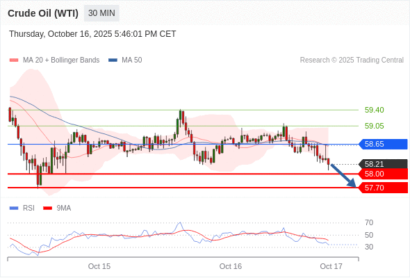 在 58.65 之下,看跌,目标价位为 58.00 ,然后为 57.70 。