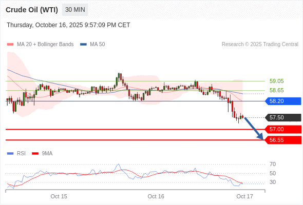 在 58.20 之下,看跌,目标价位为 57.00 ,然后为 56.55 。