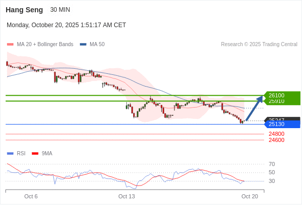在 25130 之上,看涨,目标价位为 25910 ,然后为 26100 。