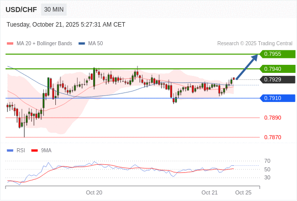 在 0.7910 之上,看涨,目标价位为 0.7940 ,然后为 0.7955 。