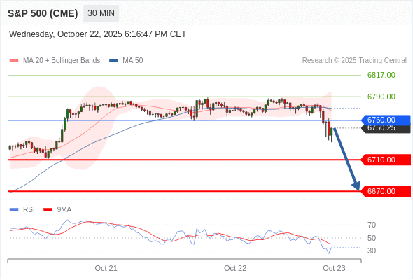交易策略: 在 6760.00 之下,看跌,目标价位为 6710.00 ,然后为 6670.00 。