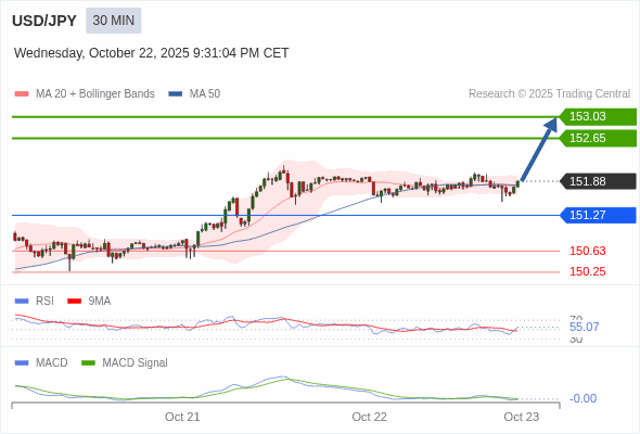 交易策略: 调整至 151.27 处,在反弹上升之前。
