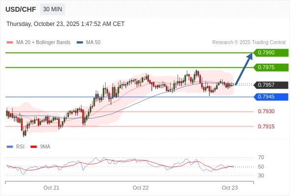 在 0.7945 之上,看涨,目标价位为 0.7975 ,然后为 0.7990 。