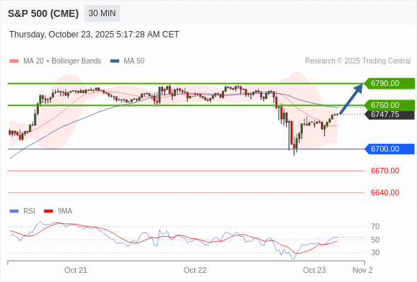 在 6700.00 之上,看涨,目标价位为 6760.00 ,然后为 6790.00 。