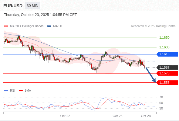 在 1.1615 之下,看跌,目标价位为 1.1575 ,然后为 1.1555 。
