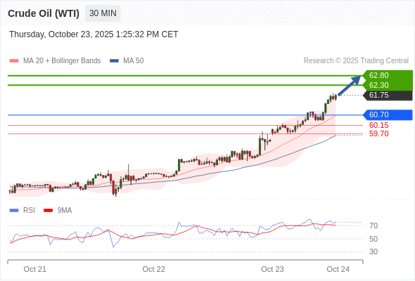 在 60.70 之上,看涨,目标价位为 62.30 ,然后为 62.80 。