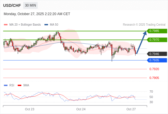 在 0.7935 之上,看涨,目标价位为 0.7970 ,然后为 0.7985 。