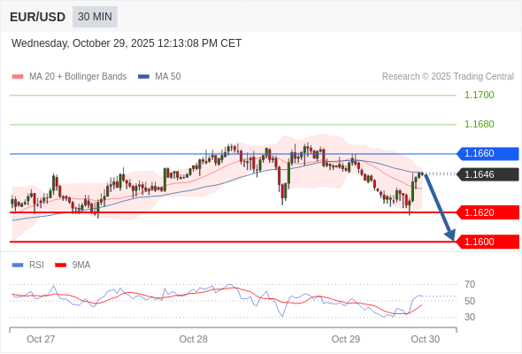 在 1.1660 之下,看跌,目标价位为 1.1620 ,然后为 1.1600 。