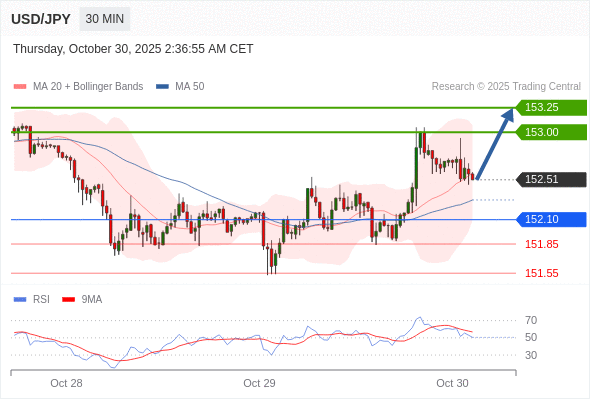 在 152.10 之上,看涨,目标价位为 153.00 ,然后为 153.25 。