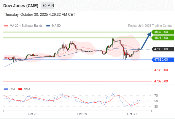 在 47610.00 之上,看涨,目标价位为 48210.00 ,然后为 48370.00 。