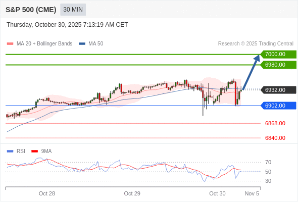 在 6902.00 之上,看涨,目标价位为 6980.00 ,然后为 7000.00 。