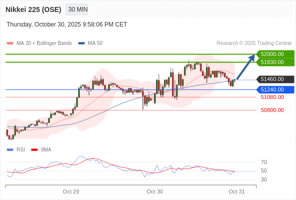 在 51240.00 之上,看涨,目标价位为 51830.00 ,然后为 52000.00 。