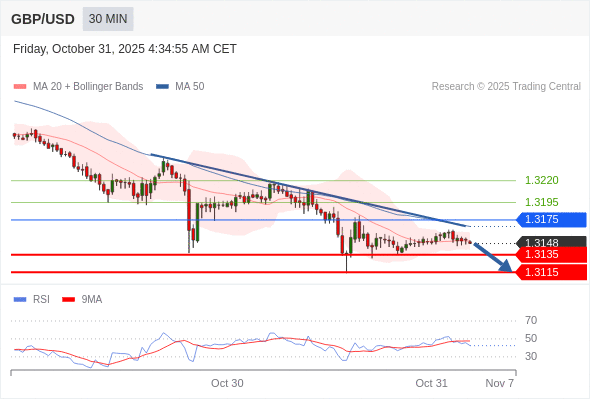 在 1.3175 之下,看跌,目标价位为 1.3135 ,然后为 1.3115 。