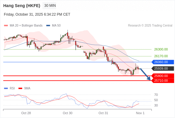 交易策略: 在 26060.00 之下,看跌,目标价位为 25800.00 ,然后为 25710.00 。