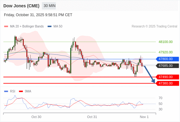 在 47800.00 之下,看跌,目标价位为 47490.00 ,然后为 47380.00 。