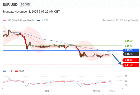 在 1.1550 之下,看跌,目标价位为 1.1510 ,然后为 1.1490 。