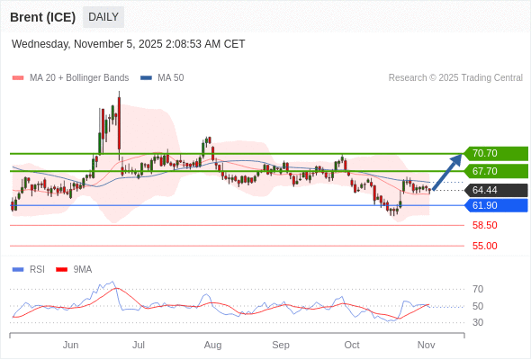 在 61.90 之上,看涨,目标价位为 67.70 ,然后为 70.70 。