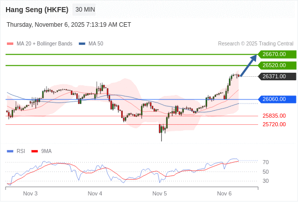 在 26060.00 之上,看涨,目标价位为 26520.00 ,然后为 26670.00 。