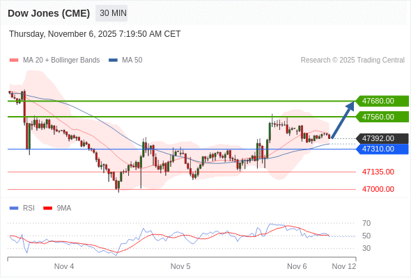 在 47310.00 之上,看涨,目标价位为 47560.00 ,然后为 47680.00 。