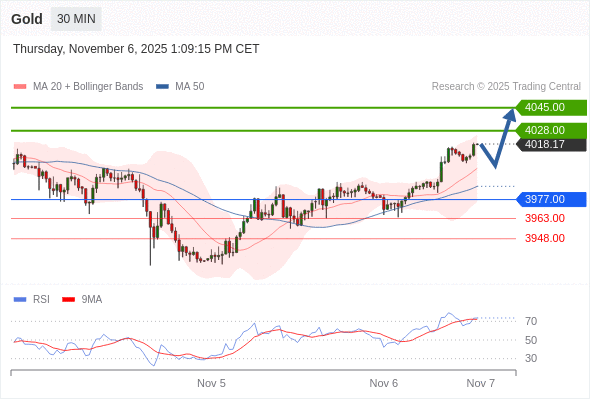 在 3977.00 之上,看涨,目标价位为 4028.00 ,然后为 4045.00 。