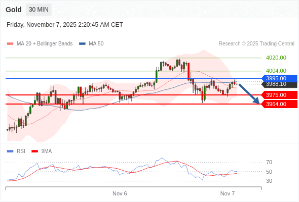 在 3995.00 之下,看跌,目标价位为 3975.00 ,然后为 3964.00 。