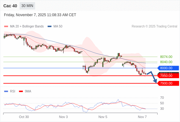 Cac 40 当日内: 短期关键阻力位在8000.00。