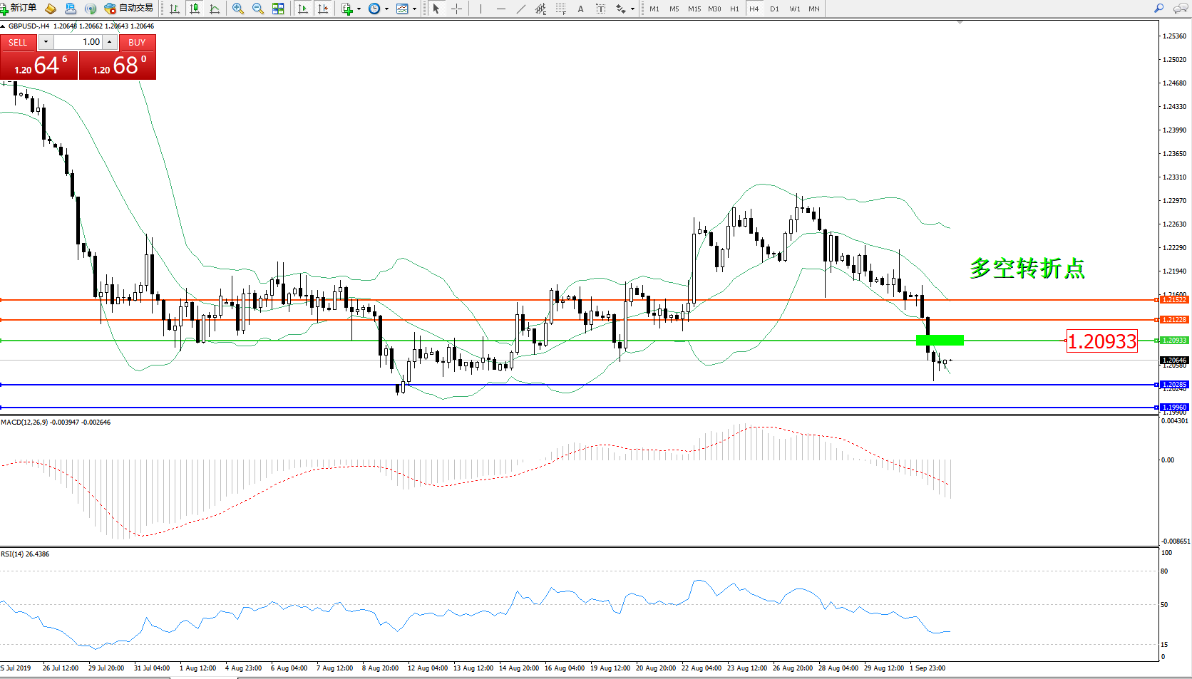 交易策略:1.20933下方看跌,目标1.20285、1.19960