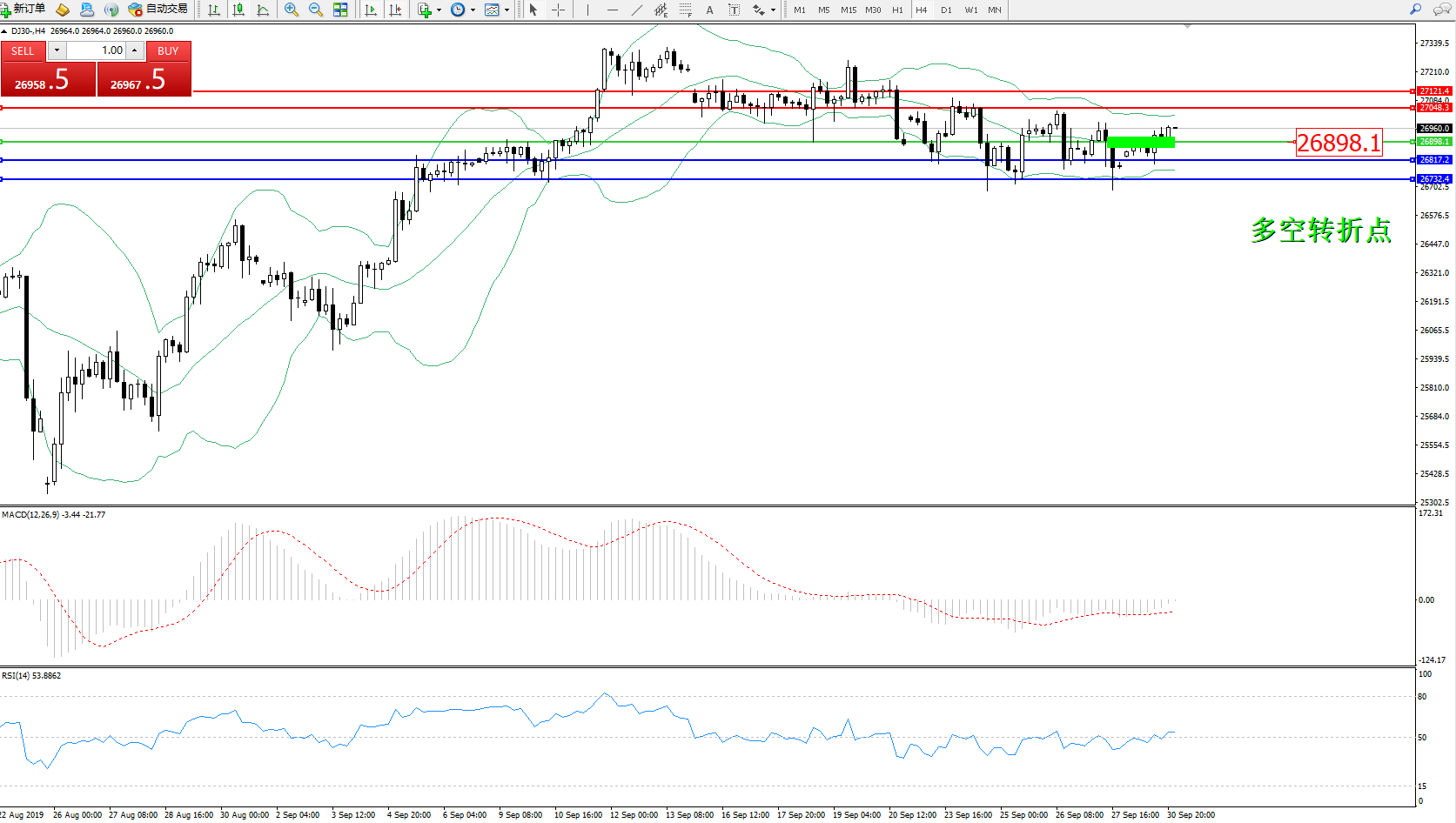 道琼斯指数930日(周一)收盘上涨96.60点,涨幅0.36%,报26916.83点。美国股市连续第三个季度收高,受助于苹果、微软和默克上涨,投资者评估贸易摩擦的最新变数。纽约联储模型上调对美国2019-2022年经济增速的预测,预计美国第四季度GDP增速为2.4%,此前预测为1.8%。投资者等待美国关键经济数据以及中美新一轮经贸磋商。