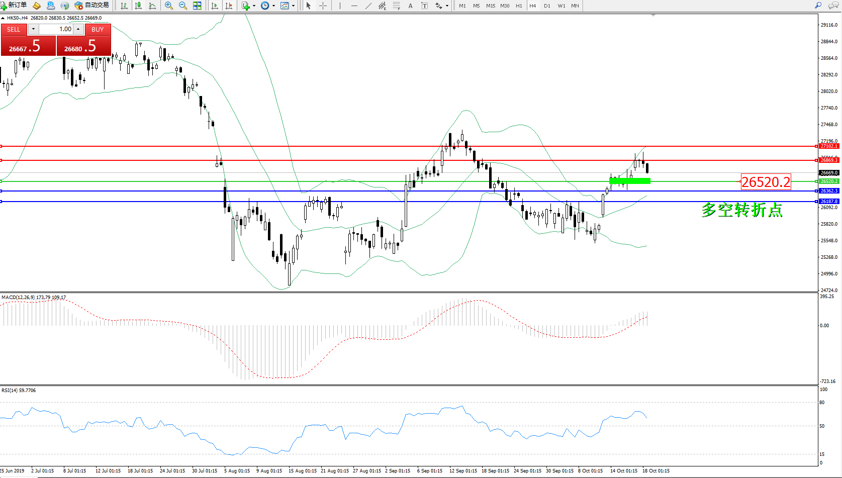 香港恒生指数1018日(周五)收盘下跌128.91点,跌幅0.48%,报26719.58点;港股早上跟随外围造好而高开,随后再扩大升幅,恒指高见26985,最多升136点。始终未能冲破27000关口。恒指在连升两日后,已见疲态。恒指见沽压后回落倒跌,低见26775。对于港股而言,最近并不是交易清淡,而是可资讨论的话题不多。短期博弈本地票,还是有一定风险,碍于篇幅不方便展开,但股指走势和宏观数据已经明了,多空双方等待的无非就是一个明确的信号。