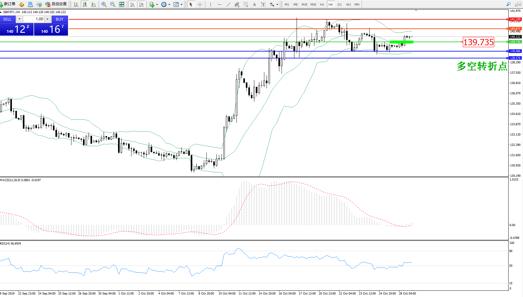 交易策略:139.735上方看涨,目标140.671、141.339