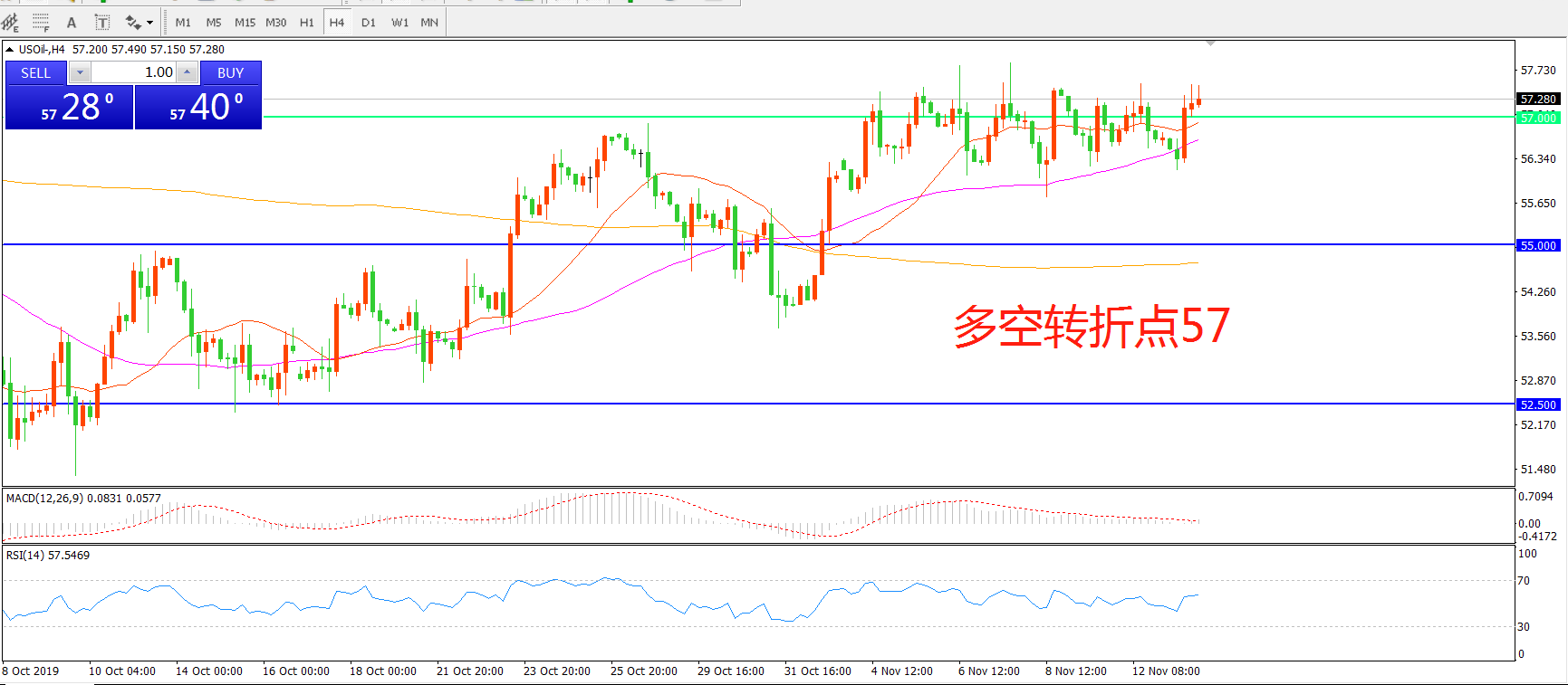 多空转折点:57.00