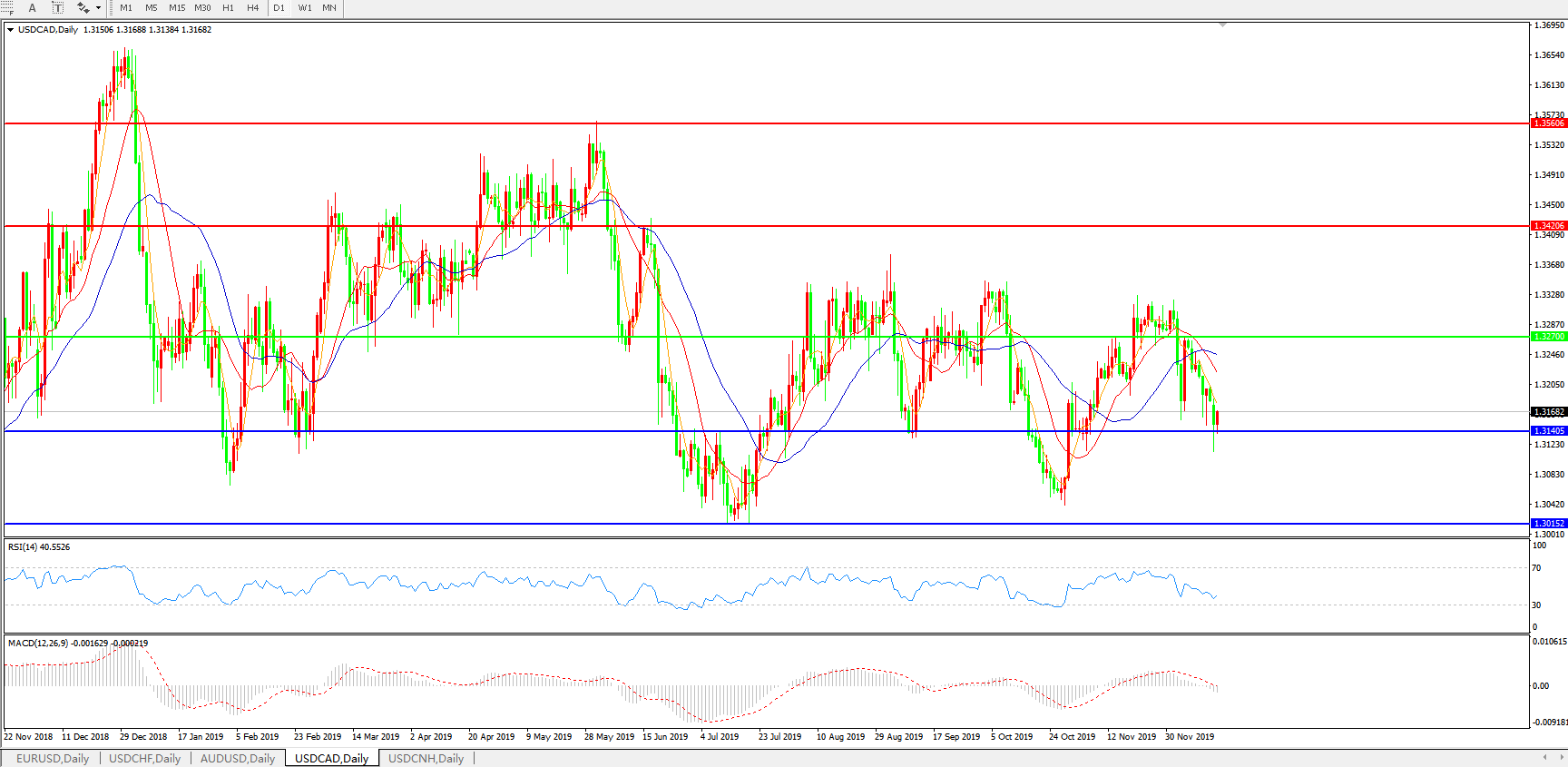 技术面简析:日线图均线再度呈空头排列,汇价持续震荡走弱,MACD在0轴上方持续走弱下穿0轴且量能0轴下方微放量,RSI震荡走低,短期汇价需关注1.3140附近支撑,预计汇价存进一步下行空间。