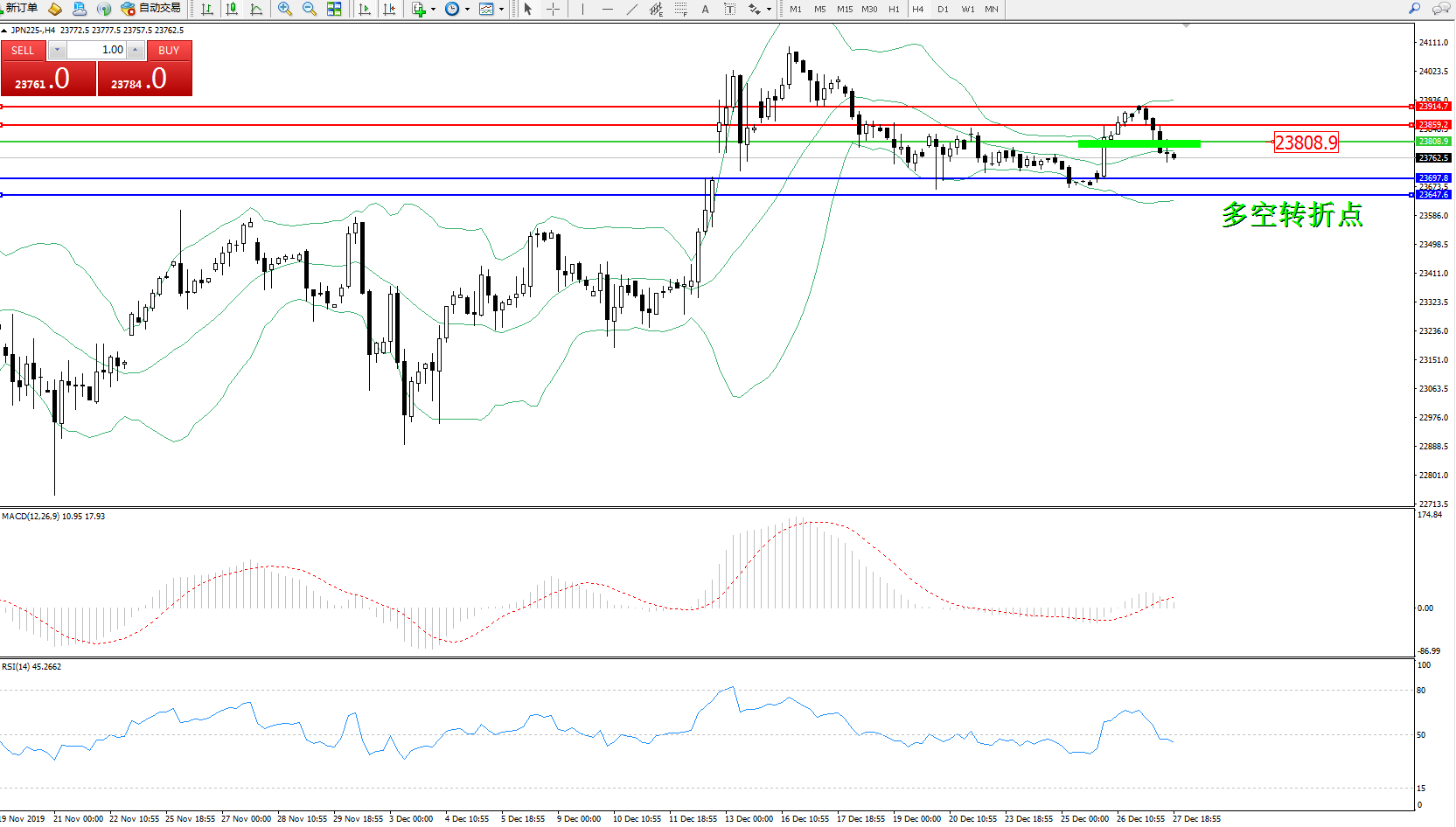 日经225指数1227日(周五)收盘下跌67.92点,跌幅0.28%,报23857.00点。日本央行必须修改其对利率的前瞻指引,以实现央行物价目标。日本央行必须在指引中加强与物价目标的联系。最近利率有所上涨,可能意味着当前政策或许还不足以刺激经济。按照IMF提议,将物价设定为一个区间,可能削弱日本央行实现物价目标的承诺。日本央行在2014年提高消费税时扩大了量化质化宽松(QQE)规模,可能需要再次扩大规模,但取决于消费趋势。