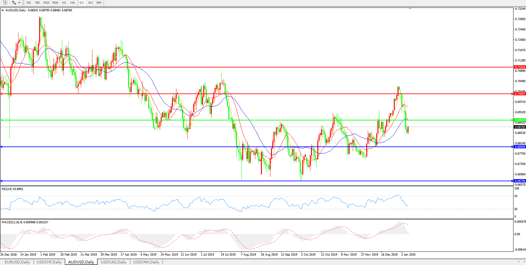 交易策略:0.6900下方看跌,目标0.6800、0.6670