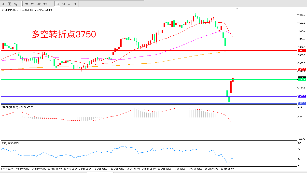 沪深300 CHINA 300 4小时图