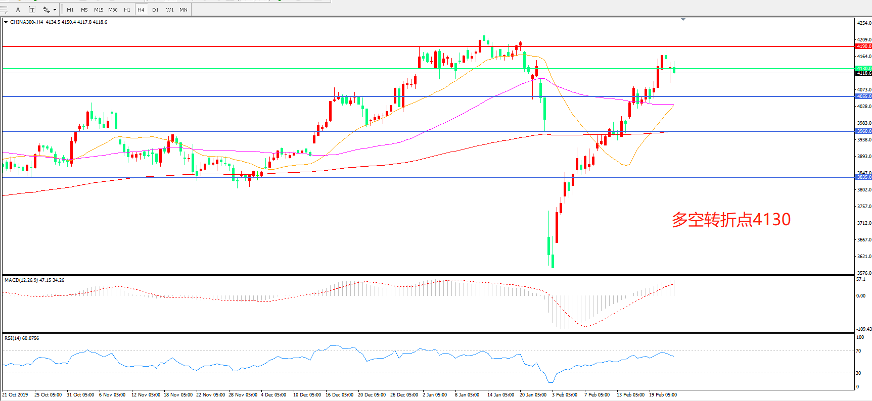 4小时图看,沪深300延续高位震荡格局,上行走势受阻,但整体仍处于多头趋势,短期均线走平,MACD红柱增加,RSI指标走平,日内延续上行概率较大。