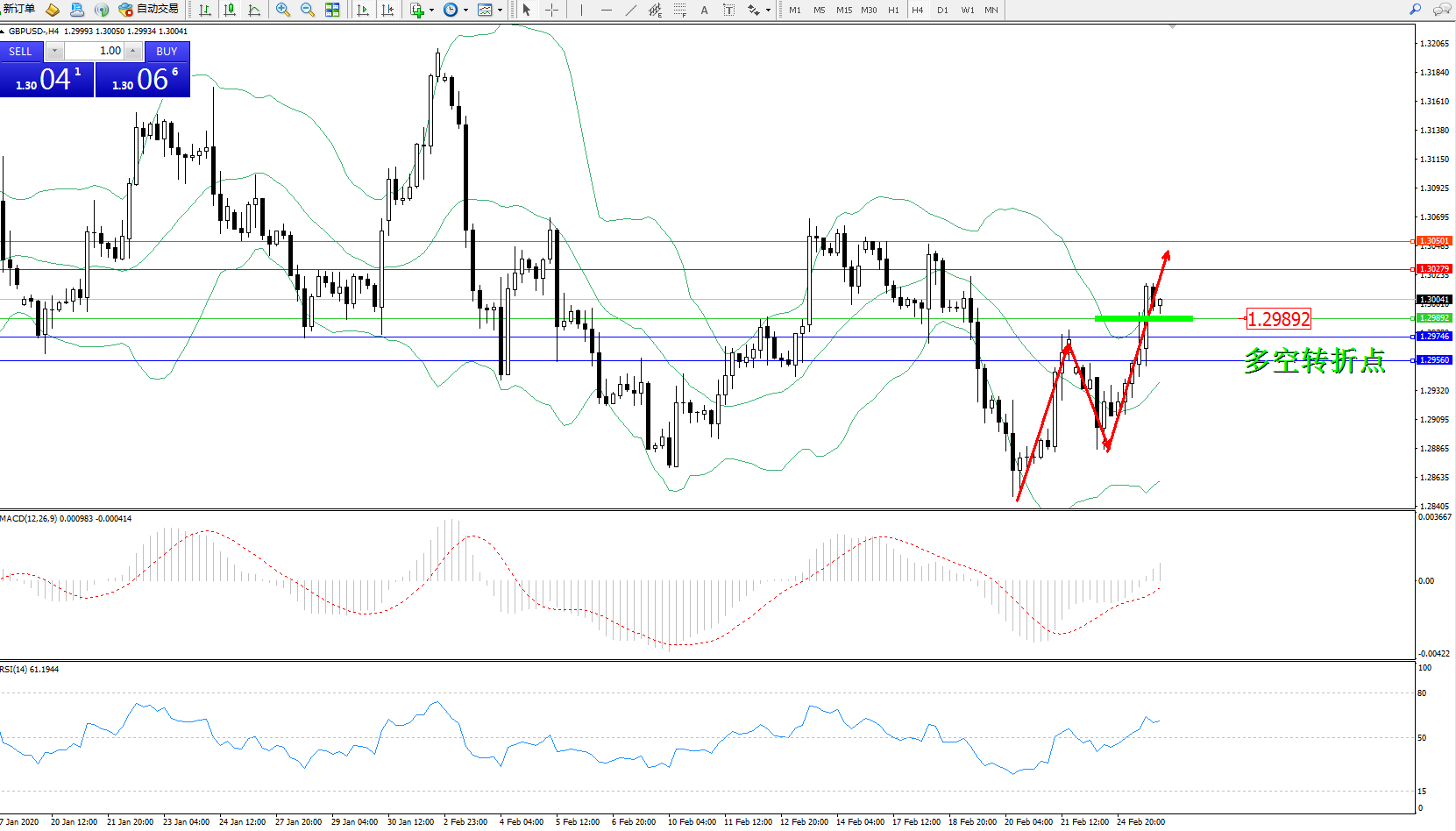 交易策略:1.29892上方看涨,目标1.30279、1.30501