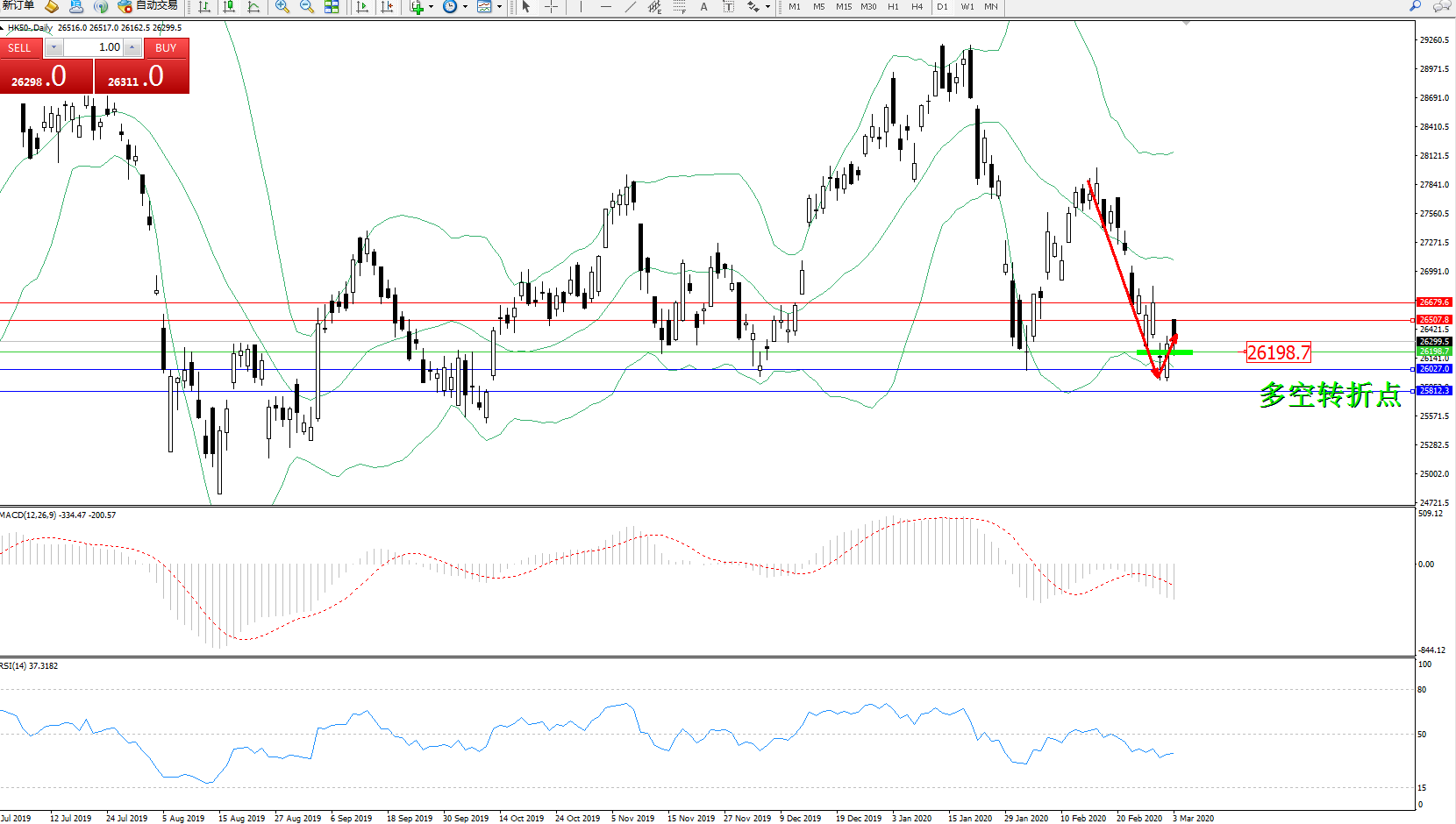 香港恒生指数33日(周二)收盘下跌6.86点,跌幅0.03%,报26284.82点;港股市场整体现高开低走行情,午盘开盘后主要股指均出现大幅回落转跌行情,而A股亦同样大幅回落。海外肺炎疫情持续发酵,今日澳洲联储降息至纪录新低,特朗普再度催促美联储降息,以应对目前肺炎疫情带来的影响。主板成交量为1164.93亿港元,港股通净流入37.26亿港元。目前港股估值在全球市场范围属于低估值洼地区域,纵向来看港股估值处历史低位,长期投资价值依然非常高。全球景气周期可能逐步见底,流动性整体仍然宽松,资金流入股市的趋势仍在继续,市场整体估值并不高,港股估值相对更具吸引力。周二美国股市大跌,因投资者担心美联储的紧急降息不足以抵抗卫生事件带来的经济影响。