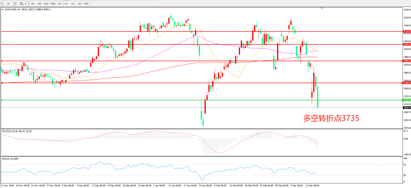 沪深300 CHINA 300 4小时图
