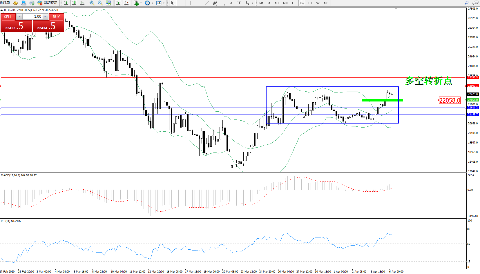 技术点评:持续呈矩形宽幅震荡上移中,多头动力仍有上行态势,延续布林带指标上轨附近不断上探中,布林带指标呈张口走势中,矩形上轨附近节点破位在即,MACD指标处于0轴线上方多头区域缓慢上扬中,RSI指标处于多头区域持续震荡上行后出现平移迹象;