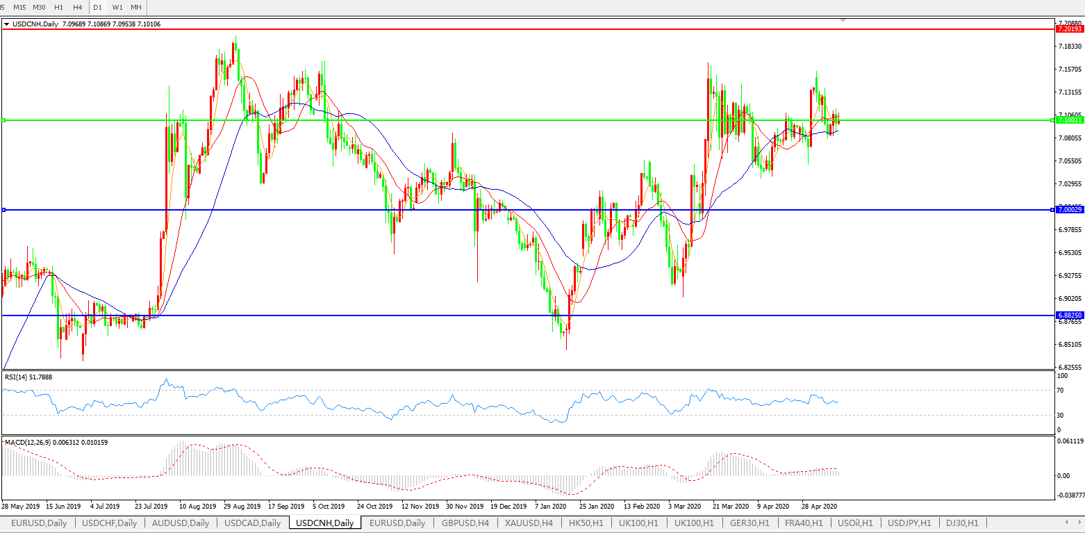 交易策略: 在7.1000之上,看涨,目标价位为7.2000,然后为7.3000。