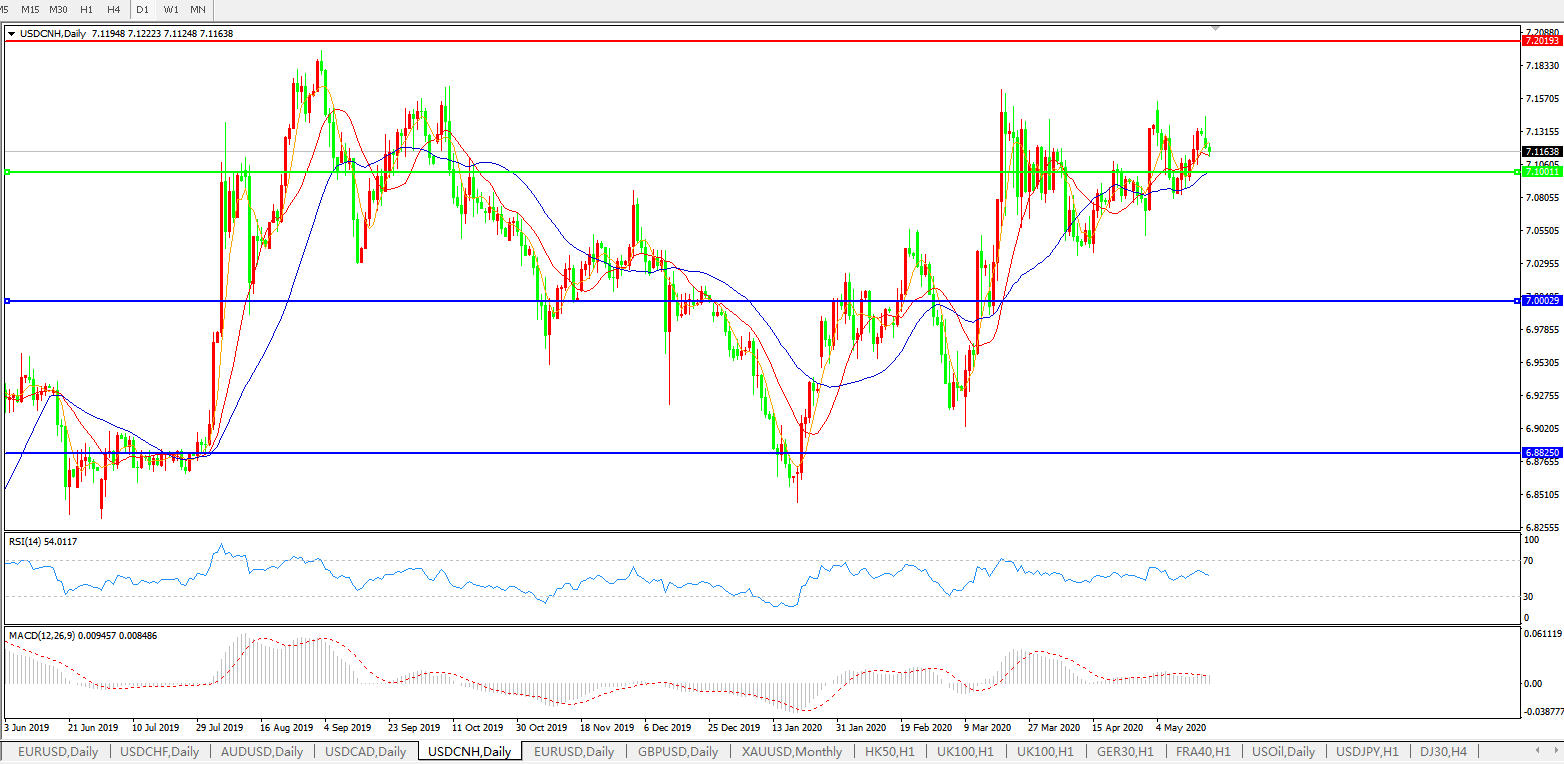 交易策略: 在7.1000之上,看涨,目标价位为7.2000,然后为7.3000。