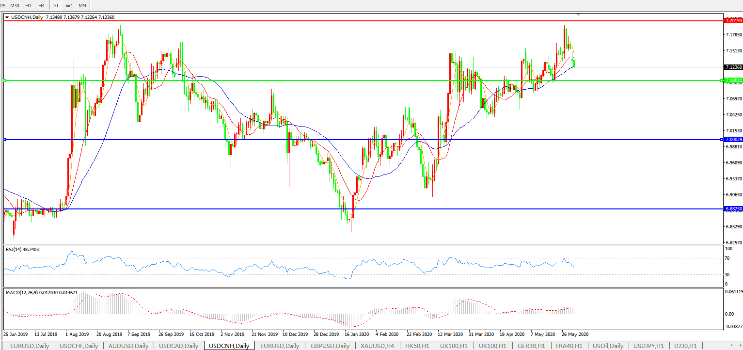 交易策略: 在7.1000之上,看涨,目标价位为7.2000,然后为7.3000。