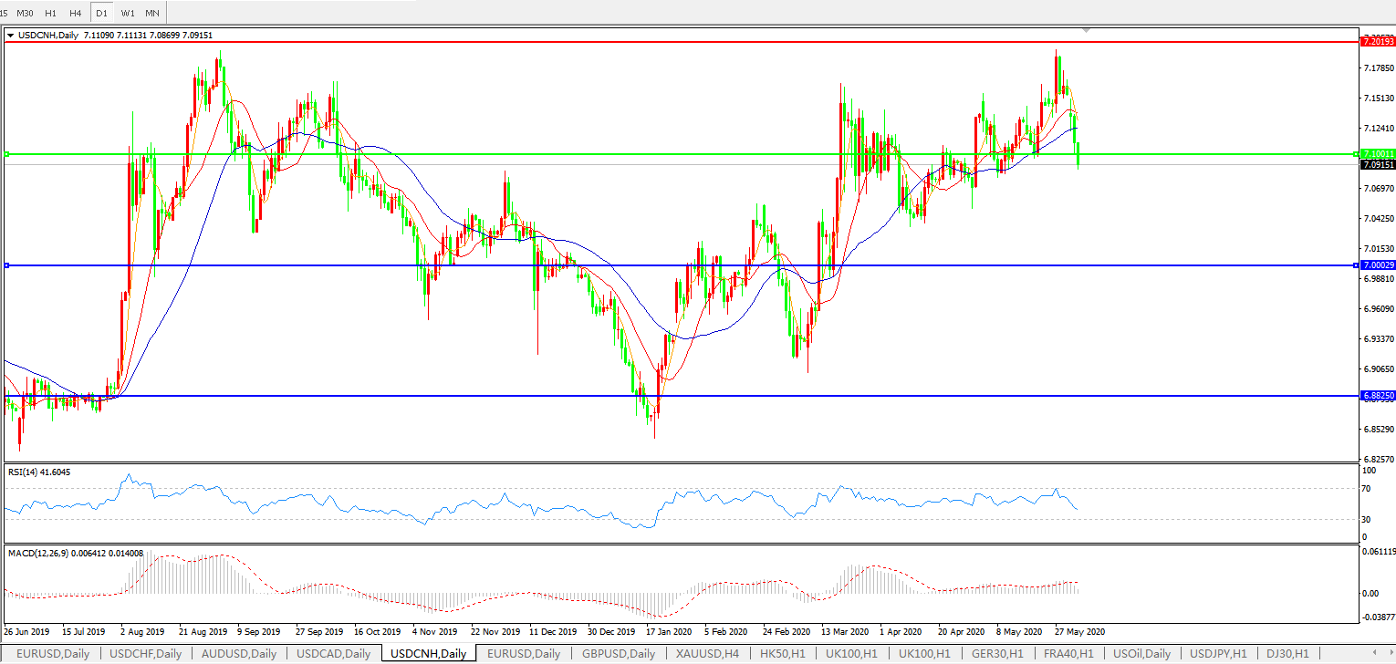 美元兑人民币USDCNH    日线图: